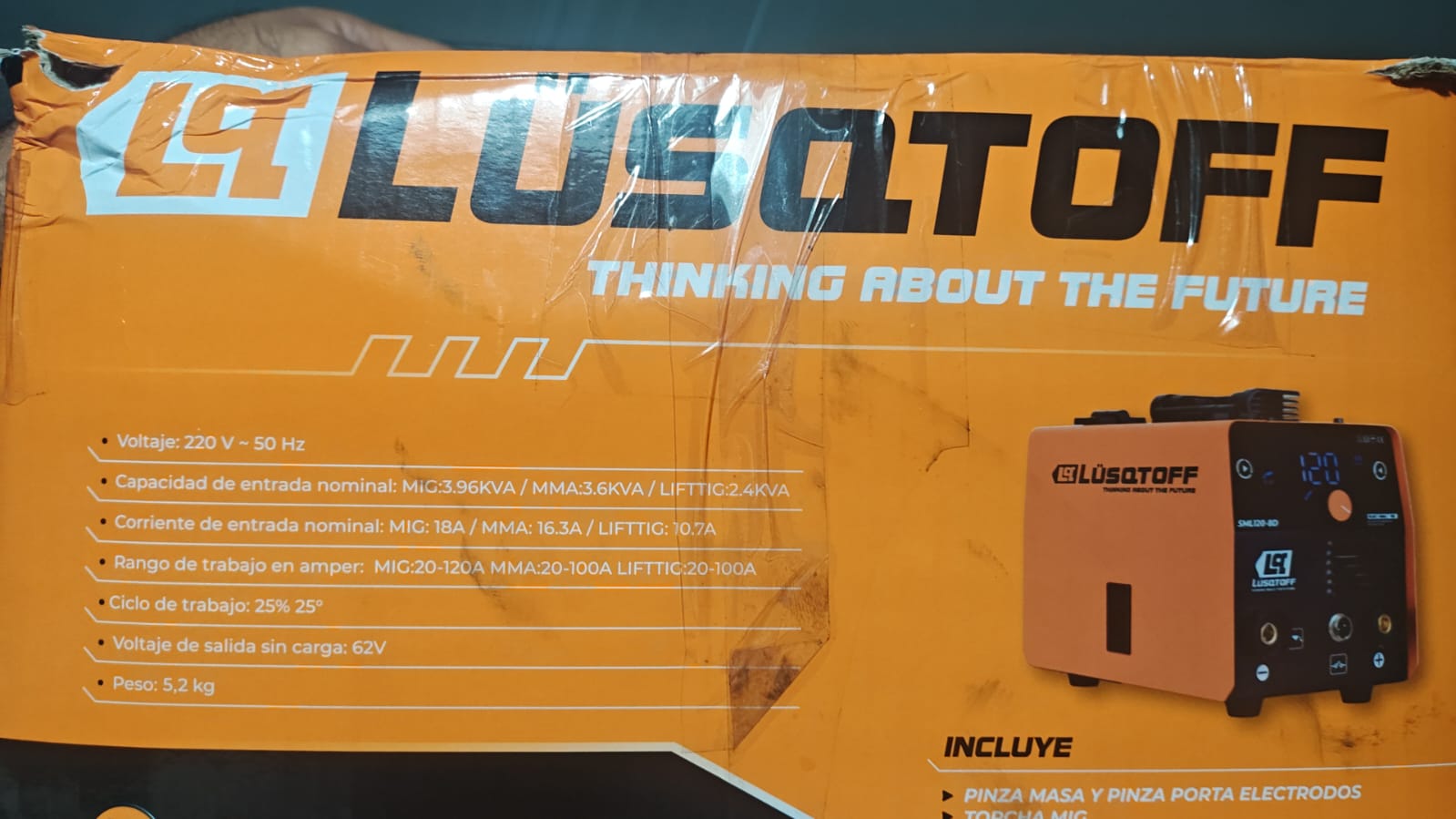 | DESCRIPCIÓN: • Compacta, potente y versátil. Esta soldadora inverter dual permite trabajar con distintos procesos sin cambiar de equipo: FLUX, MMA y TIG LIFT (torcha no incluida). Panel frontal simple con potenciómetro y display para ajustar de forma rápida. Ideal para trabajos generales, mantenimiento y estructuras livianas. Manija superior para transporte cómodo. Oportunidad ideal para armar tu taller. DATOS TECNICOS: • Voltaje: 200 V – 50 Hz • Capacidad de entrada nominal: FLUX: 3,96 KVA MMA: 3,6 KVA LIFT TIG: 2,4 kVA • Corriente de entrada nominal: FLUX: 18 A MMA: 16,3 A LIFT TIG: 10,4 A • Rango de trabajo en amper: FLUX: 20 a 120 A MMA: 20 a 100 A LIFT TIG: 20 a 100 A • Ciclo de trabajo: 25% 25° • Voltaje de salida sin carga: 62V • Peso: 6,6 kg INCLUYE: • Pinza maza y pinza porta electrodos • Torcha MIG • Picos de contacto (0.6, 0.8, 0.9, 1.0 mm) • No incluye Torcha TIG |